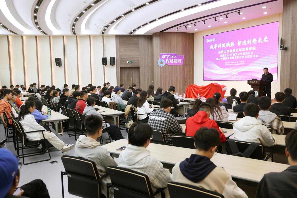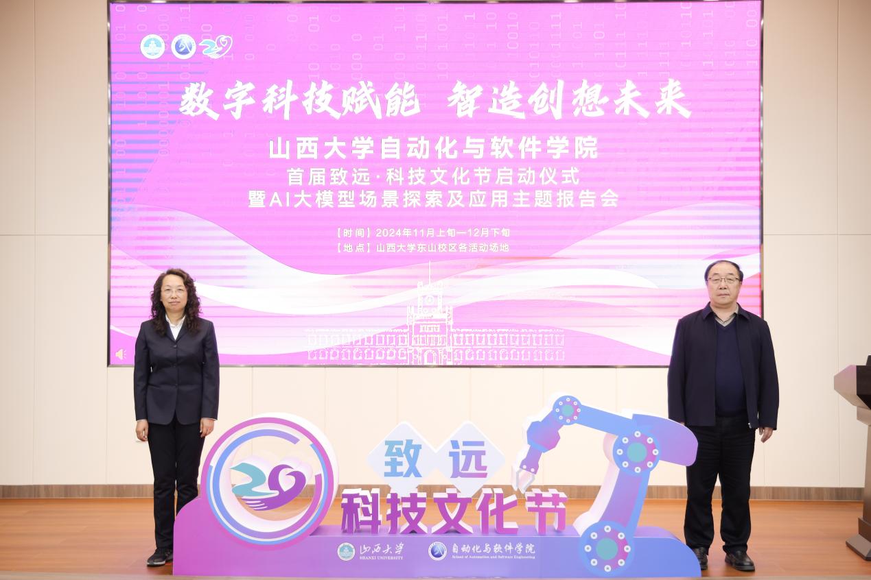 为深入学习贯彻党的二十大精神和党的二十届三中全会精神,积极响应国家创新驱动发展战略,激发青年学生的科技创新热情,提升学术素养与实践能力,加强学术交流与合作,弘扬科学精神,培育打造有特色、高品质、示范性的校园文化品牌,促进科技创新与校园文化的深度融合,推动构建“致远·思政育人文化体系 产教融合新工科育人 数智化协同育人”的学生管理育人新模式。11月8日下午,山西大学自动化与软件学院首届致远·科技文化节启动仪式暨ai大模型场景探索及应用主题报告会在求真楼知行报告厅成功举办。学院党委书记王莉、院长贾新春、党委副书记李登春、副院长郭威、学院专兼职辅导员老师代表参加启动仪式,活动由辅导员老师艾克达·阿布都克力木主持。