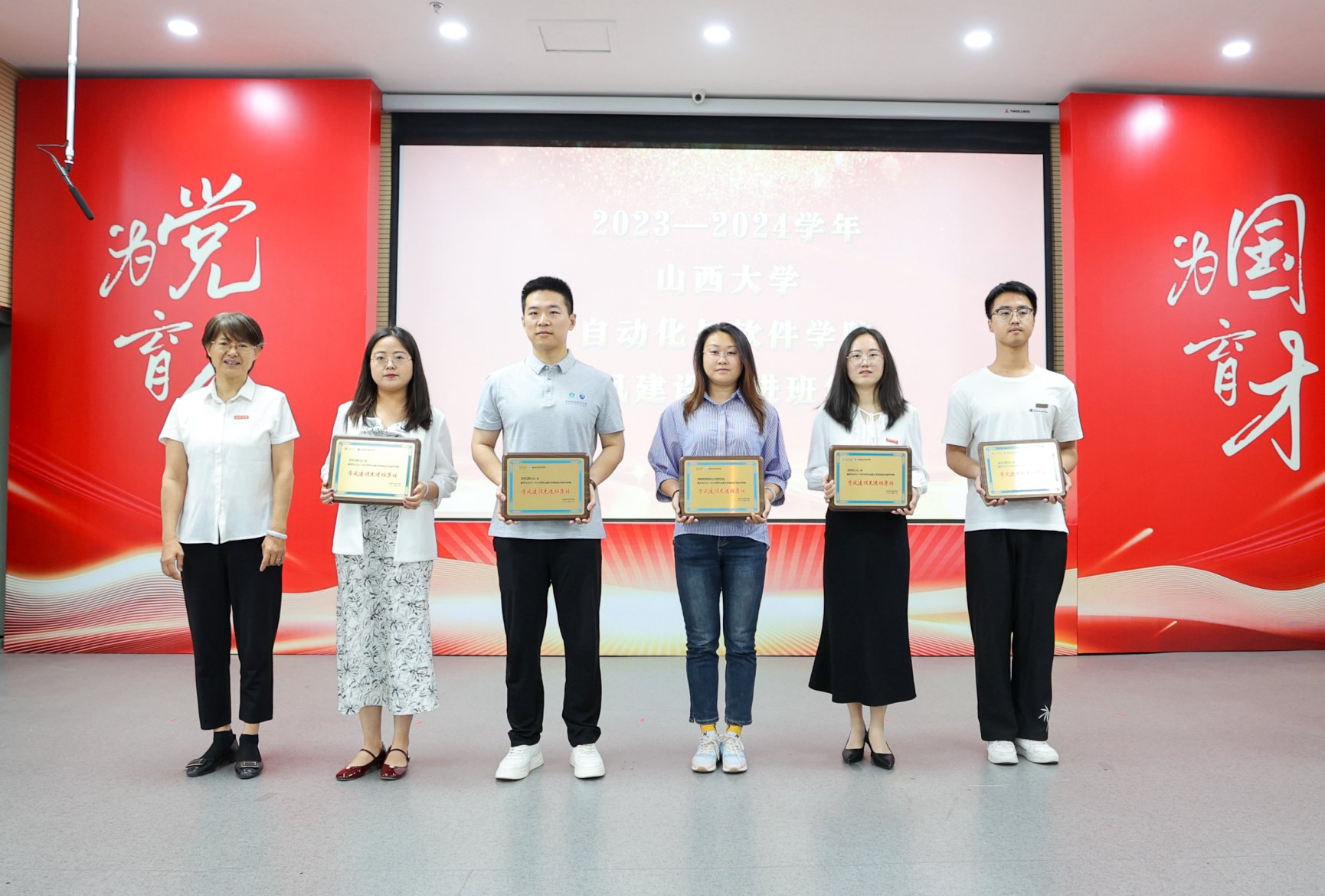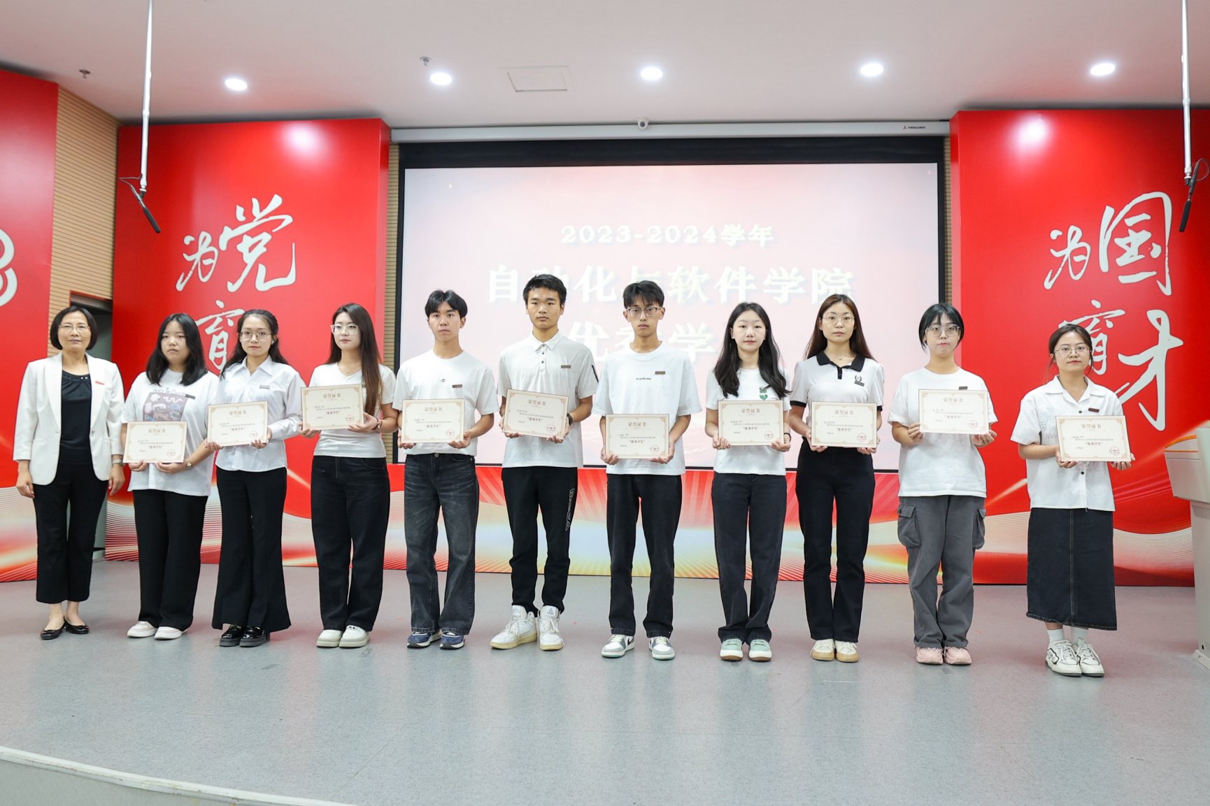 会上,学院党委副书记李登春老师宣读了《自动化与软件学院2023—2024学年学生表彰决定》。灼灼奖章映韶华,勤奋终得榜上名。党委书记王莉老师为荣获“先进班集体”的辅导员老师颁奖。组织员项世红老师为荣获“学风建设先进班集体”的辅导员老师颁奖。副院长王琦老师为优秀学生代表颁奖。副院长郭威老师为优秀学生干部代表颁奖。