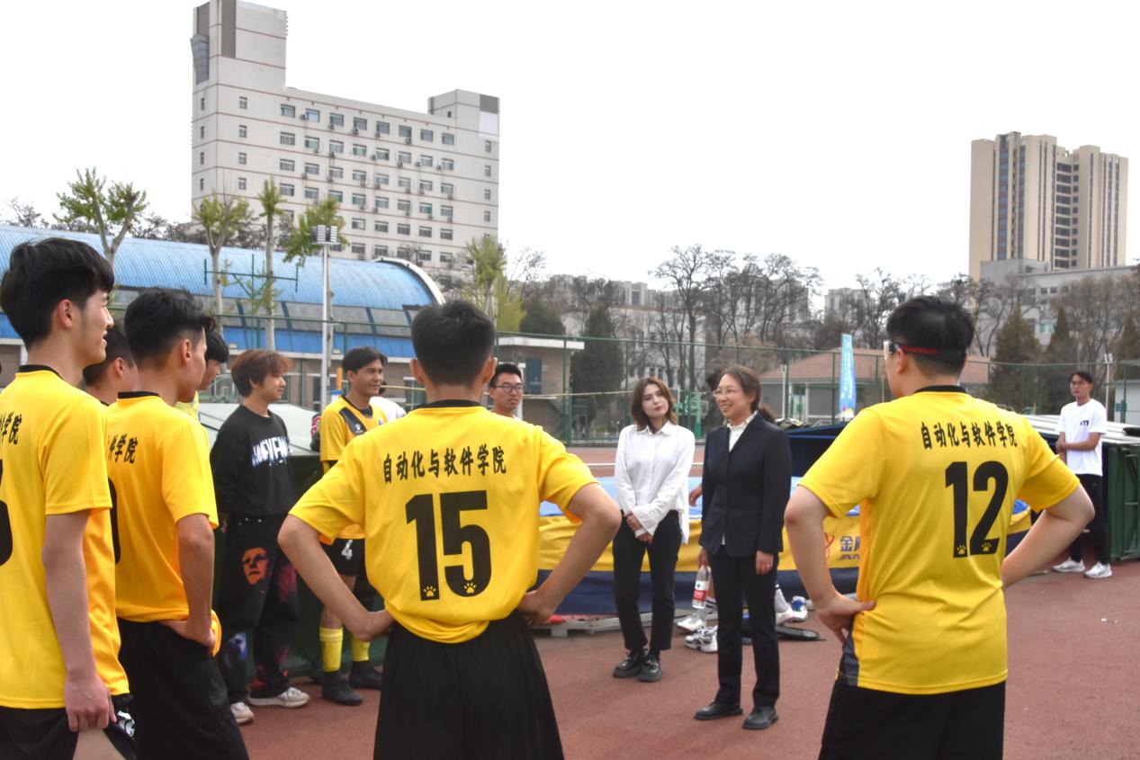 赛前,学院党委书记王莉,院长贾新春及辅导员教师代表一行专程看望球队并为队员们加油打气。下午3点50分,比赛正式开始,比赛双方都铆足劲飞速地窜动,激烈比拼,电力与建筑学院球队上半场抓住我方失误打进一球,我院足球队暂时以0:1比分结束上半场比赛。
