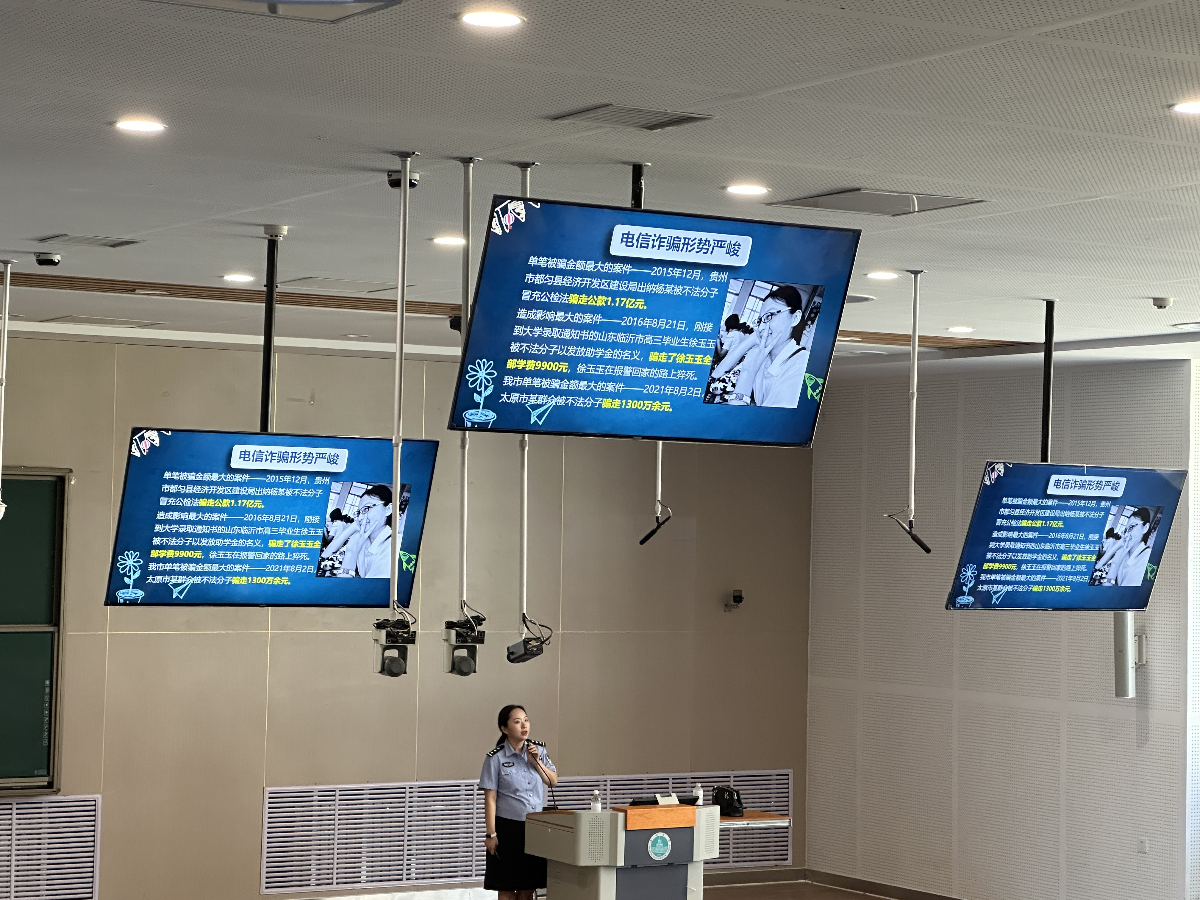 老军营派出所所长武彤警官结合接警的亲身经历,以案开讲,生动形象地向同学们揭露了各类典型网络诈骗的惯用手法。网购刷单、点赞打赏、投资理财、伪造网站、假借教育机构之名进行诈骗......通过学习,同学们切实了解到层出不穷的诈骗陷阱就时时发生在我们身边。