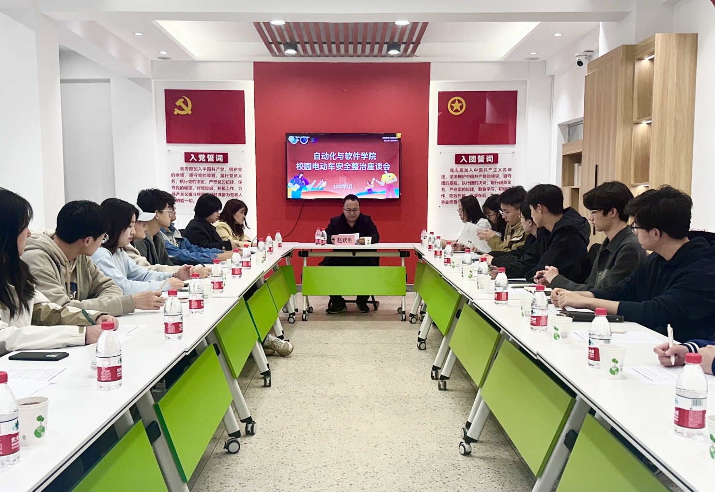 随着校园内电动车数量的急剧增加,交通安全问题日益凸显,为提升师生安全意识,确保校园交通安全,营造安全和谐的校园环境,2025年3月14日下午15:00,研究生工作部(处)深入自动化与软件学院致远·学生社区召开校园电动车安全整治调研座谈会。会议在致远·学生社区293党团活动中心召开,参加本次座谈会的有研究生工作部(处)副部(处)长赵跃胜,自动化与软件学院2023级辅导员代表张也、2024级辅导员代表荀丽玲、自动化与软件学院及致远·学生社区学生代表。本次座谈会由致远·学生社区指导老师靳佳霖主持。