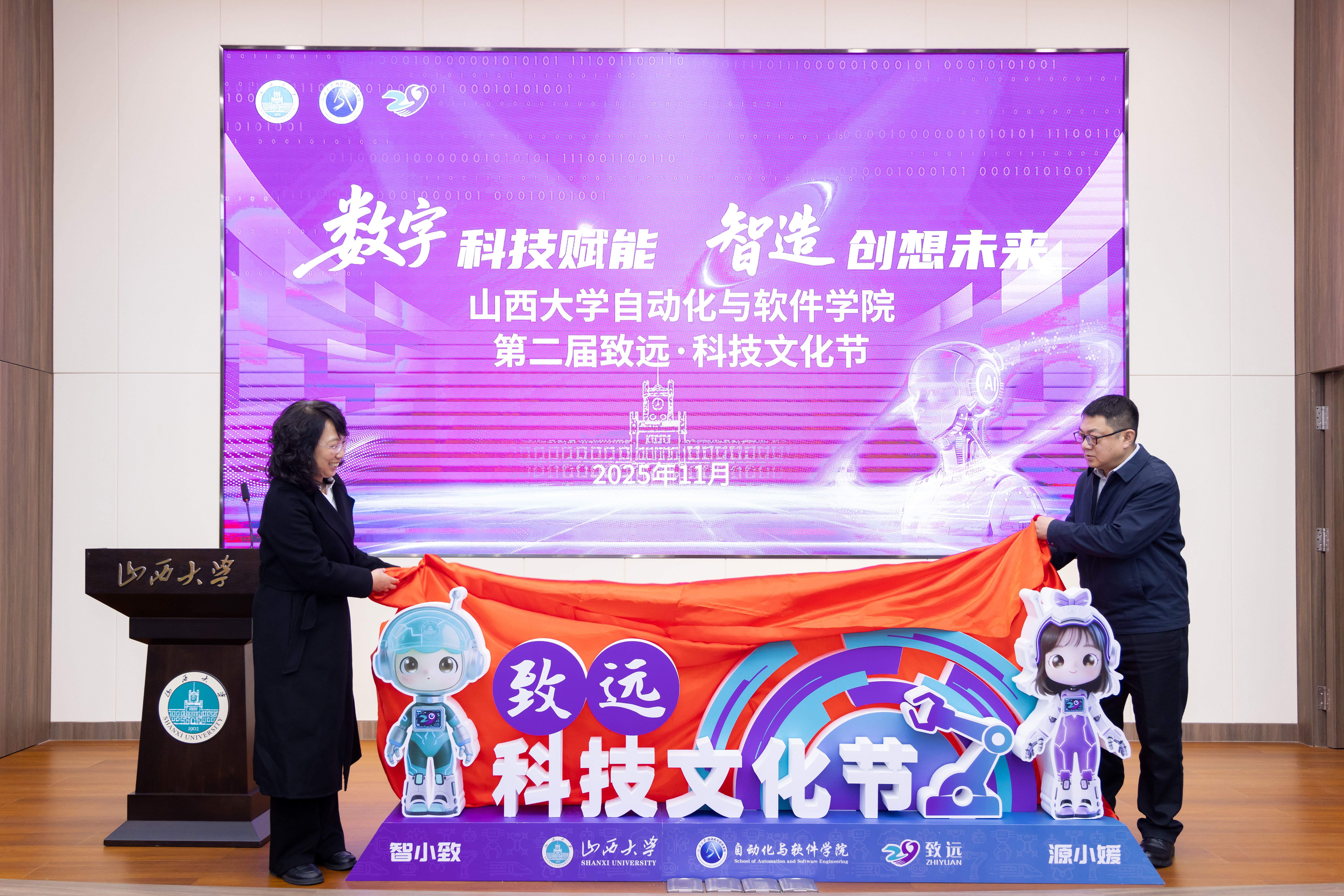 第二届致远·科技文化节启动仪式在充满科技感的宣传片中拉开帷幕。学院党委书记王莉与院长朱广宇共同为自动化与软件学院第二届致远·科技文化节揭幕。