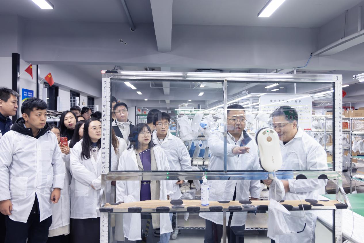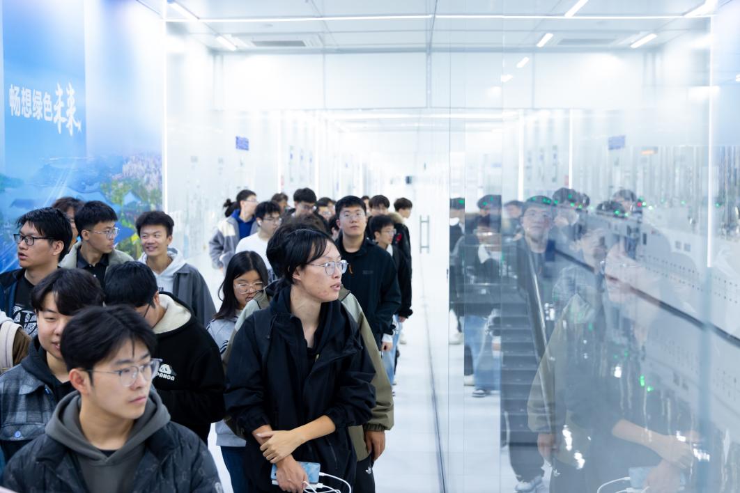 启动仪式后,学院立即开启产业创新沉浸式体验。在晋能光伏topcon电池车间,师生们实地观摩了全自动生产线的高效运转,深入了解光伏电池的控制原理与生产工艺;在洒拖机器人公司,同学们详细探讨了机器人的传感器技术、运动控制算法及自动化生产工艺;在迪奥普科技公司,师生细致了解了工业级无人机及其在农业植保、物流运输等领域的创新应用。同学们在实践中深化专业认知,拓宽产业视野,切身感受科技创新驱动产业发展的磅礴力量。