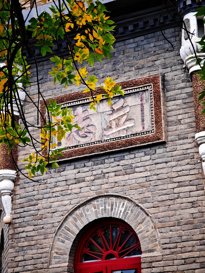 作品简介:灰砖斑驳的墙面上,“立志”匾额镌刻着岁月的重量,那是民国学堂留下的精神火种,在时光里熠熠生辉。红门拱窗如青春的瞳孔,映照着百年校园的文化底蕴;黄绿交织的树叶似灵动的笔触,为古朴建筑晕染出鲜活的生机。历史与青春的温柔对话定格在这一帧。