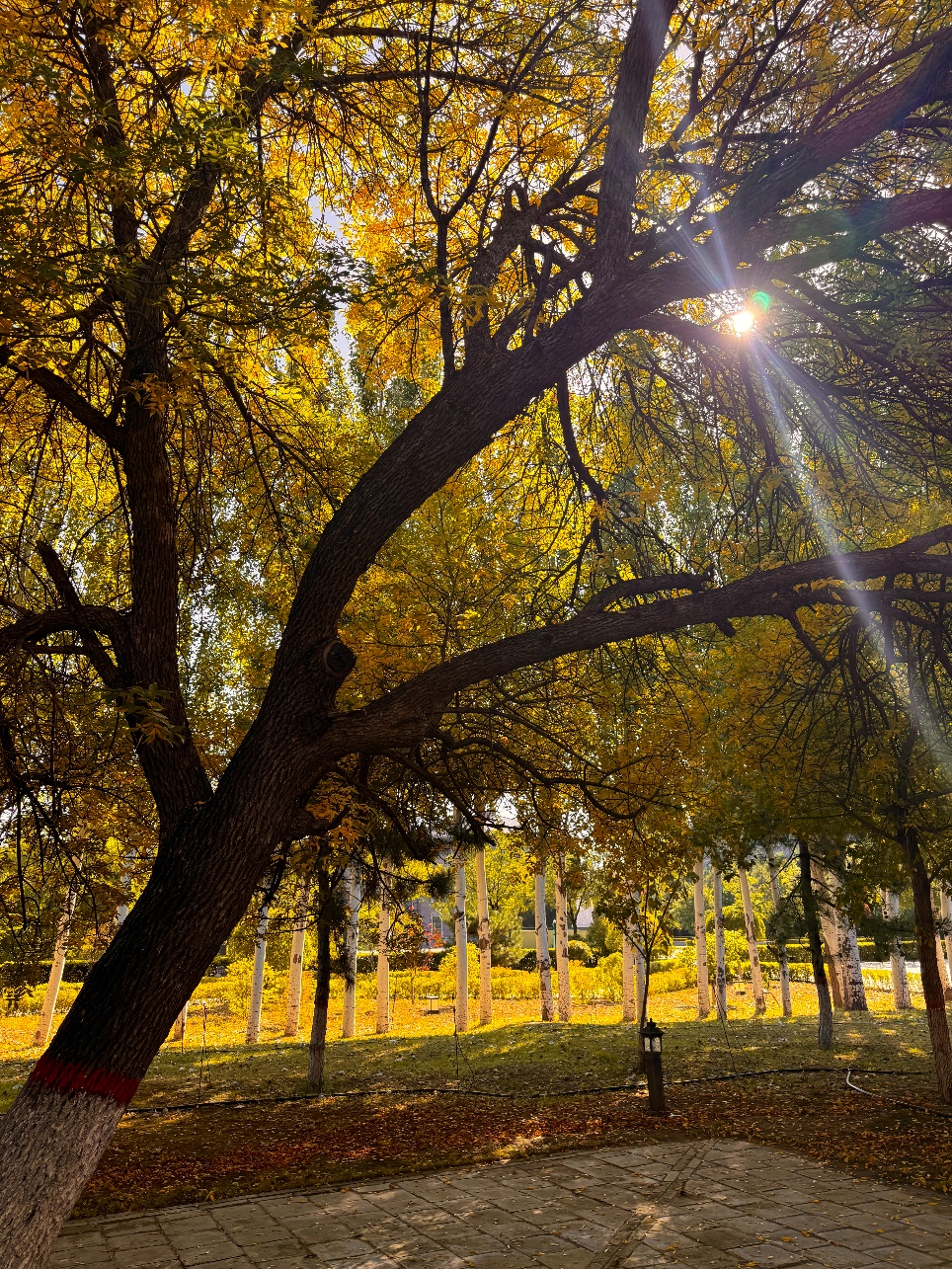 作品简介:在山西大学大同校区的校园里,秋日的阳光透过金黄的树叶洒落,为校园披上一层温暖的滤镜。古树虬曲的枝干与满地落叶相映成趣,远处的林木错落有致,尽显百年学府的静谧与诗意,每一片叶的摇曳都在诉说着山西大学的人文底蕴与四季风华。